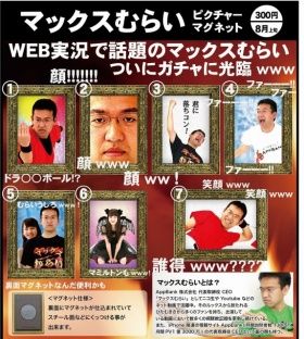 WEB実況で話題のマックスむらい、ついにガチャに光臨wwwマックスむらい ピクチャーマグネット (50個入り)300円商品 50個セット 65mmカプセル【メーカー】 奇譚クラブ【商品内容】 全7種類...