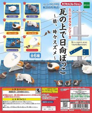 人気カプセルトイ「ミニジオラマシリーズ」、新作は「屋根の上」!瓦の上で日向ぼっこする、猫とスズメのワンシーン、瓦パーツはタテ・ヨコにつなげる事ができます。瓦の上で日向ぼっこ ガチャ 猫、時々スズメ20...