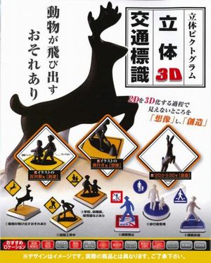 動物が飛び出すおそれあり2Dを3D化する過程で見えないところを「想像」し、「創造」デスクトップに3D交通標識!の新感覚カプセルトイ!立体ピクトグラム 立体交通標識 ガチャ200円商品 50個セット /...