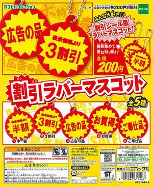 みんな大好き!?スーパーでは私もお世話になっている、見慣れた、割引シール風ラバーマスコットです!複数買えば、店頭割引の重ね張り風も再現可能!割引ラバーマスコット ガチャ200円商品 50個セット / ...