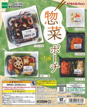 裏側のラベルまで再現!惣菜ポーチ ガチャ200円商品 50個セット / カプセルサイズ:65mm【メーカー】 エポック【商品内容】 全5種類・ひじき煮・ポテトサラダ・かぼちゃ煮・煮物・ナムル税別価格/...
