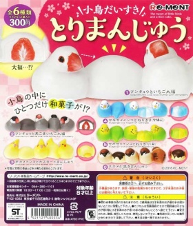 あれ!?鳥じゃないのが混じってる…!?なに食わぬ顔でいちご大福や焼きまんじゅうが混じっています。フィギュアは2パーツに分かれるので、他の鳥同士を自由に組み合わせることが出来ます。小鳥だいすき とりまん...