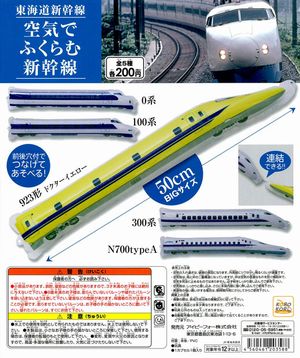 子供から大人まで、みんな大好き「新幹線」のビニールマスコットが登場です。前後の丸穴にボールチェーンを付ければ、新幹線同士の夢の連結も可能!東海道新幹線 ガチャ 空気でふくらむ新幹線200円商品 50個...
