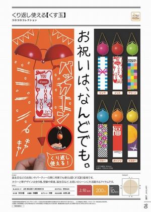 誕生日などのお祝いやパーティーの際に何度でも使える【くす玉】の登場です。カラーと帯デザインは全6種。受験や昇進、誕生日など、お祝いのシーンに大活躍するアイテムです。繰り返し使える、くす玉 ガチャ200...