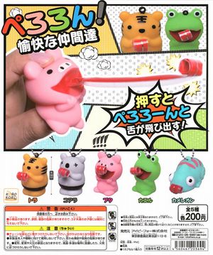 押すとペロロ〜ンと舌が伸びる昔懐かしい玩具を思い出させるマスコット。コアラ・トラ・カエル・ブタ・カメレオンと表情も愉快な5種類の仲間が勢揃い。子供たちのオモチャとしても、並べて飾るのにも使えるカワイく...