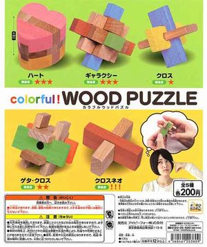 小さなパーツを複雑に組み上げて目的の形を完成させる「ウッドパズル」の新作です。今回は各パーツに赤や緑、青、黄などのカラーリングを施し、カラフルにしました。カラフル!ウッドパズル ガチャ200円商品 5...